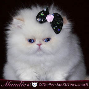 Persian Cats CH Priscilla & CH Fabian ® welcomed their beautiful Persian Kittens born early morning Monday Feb 22, 2010. This is the very first persian kittens from Champions Priscilla & Champion Fabian. Champion Maxi is the grandfather of these outstandingly cute kittens. Both parents Priscilla & Fabian and being very attentive to their kittens, constanly making sure they are well. Our kittens arrived girl~boy~girl Mandie~Ramses~Priscilla. All these kittens will be extremely light almost pure white persians with bright electric blue eyes. CH Fabian’s side carries the violet blue gene-which is now showing up in these kittens-it’s a rare & outstanding look!!
