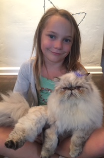She is doing amazing! She is such a sweet kitten and extremely playful! She purrs non-stop and loves to be with us at all times. She will sit with Halo for hours while Halo plays dolls and I even caught them playing a board game together one day. It was cute, Roxie was chewing on the playing cards and Halo was moving both game pieces. Halo just adores her and they are definitely best friends. They sleep together each night, sometimes Roxie even sleeps on Halo’s head at the top of her pillow.