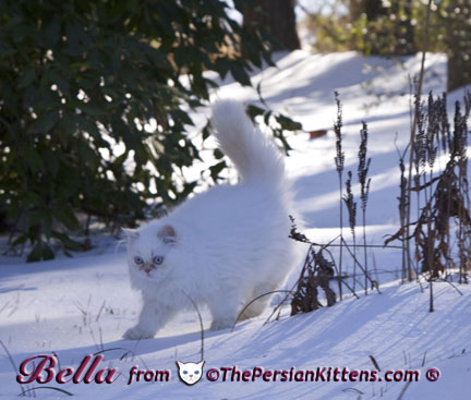 Persian Kitten Bella spotting a Dragonfly in the snow.